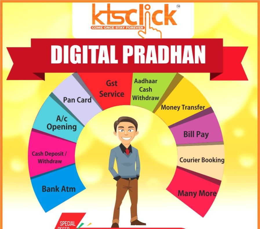 Ktsclick offers franchise opportunities for individuals to become a part of their network and offer digital services to customers. Here's a general overview of the Ktsclick Digital Pradhan franchise model for individuals: any one can start this business and start earning from his place , this franchise is very low investment high earning opportunity by selling so many digital services through smart portal , The target audience for Ktsclick franchisees . Ktsclick Digital Pradhan is a program or initiative by Ktsclick, likely focused on digital business empowerment and online services sell for individuals, particularly in rural or underserved areas, the program aims to create digital leaders or ambassadors. Based on product value, here are some possible aspects of Ktsclick Digital Pradhan: 1. Digital literacy: The program might provide training and education on basic computer skills, internet usage, and digital tools. 2. Rural empowerment: KTSClick Digital Pradhan may focus on bridging the digital divide in rural areas, enabling individuals to access digital services and opportunities. 3. Leadership development: The program could identify and train local leaders to champion digital adoption and drive positive change in their communities. 4. Digital entrepreneurship: KTSClick Digital Pradhan might offer resources and support for individuals to start their own digital businesses or initiatives. 5. Partnerships and collaborations: The program may involve partnerships with local organizations, government agencies, or other stakeholders to amplify its impact Franchising is a well-known marketing strategy for business expansion. For the franchisor, it's an alternative to expansion through corporate-owned outlets or "chain stores". For the franchisee, it can offer many advantages, including: Reduced risk of failure Ongoing business support Market expertise Brand recognition and loyalty Increased buying power Higher profits Better chance of finance Being your own boss Access to advertising and promotional resources No need to spend money on training employees .