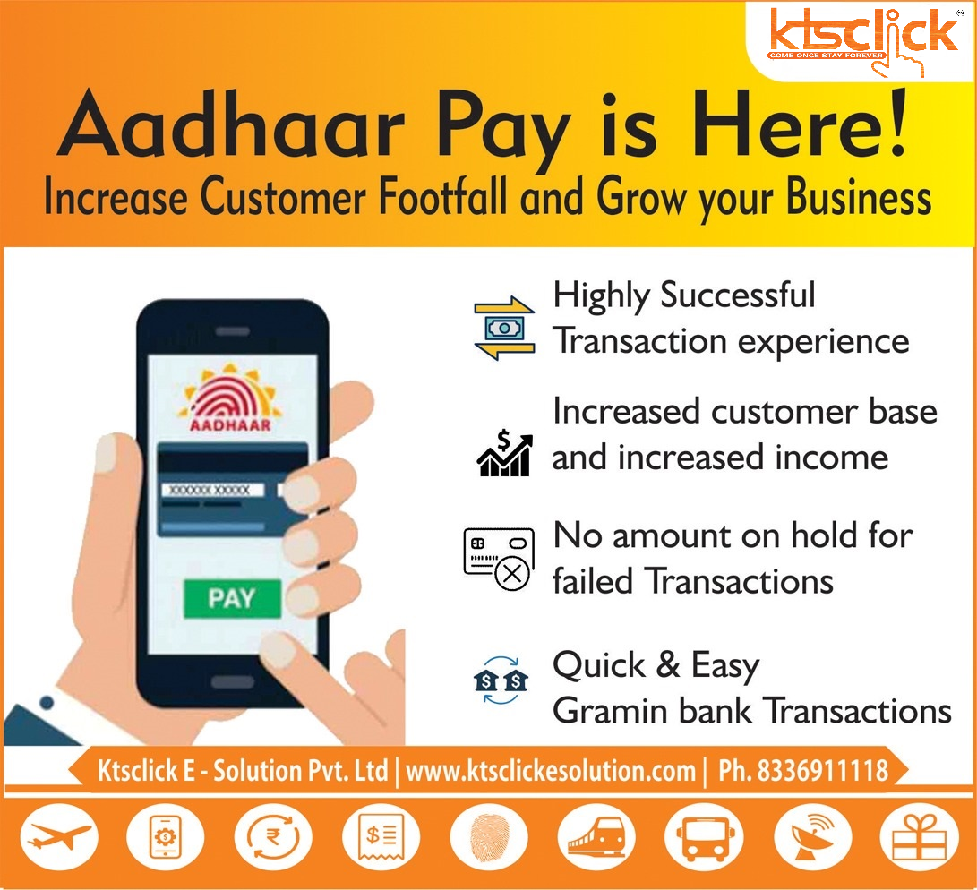 KTSCLICK Aadhaar Pay makes it easy to get cash using only your Aadhaar number and fingerprints. It is safe, secure, and convenient way to get your cash without using your physical debit card. You just need Aadhaar number and biometric.